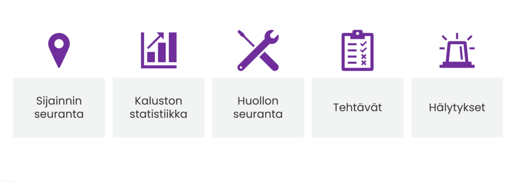 Alto tuottaa reaaliaikaista dataa laitteiden huollon, suorituskyvyn, ja käytön optimointiin, ja tarjoaa kaikki perustoiminnot kaluston paikannukseen sekä toiminnan seurantaan.